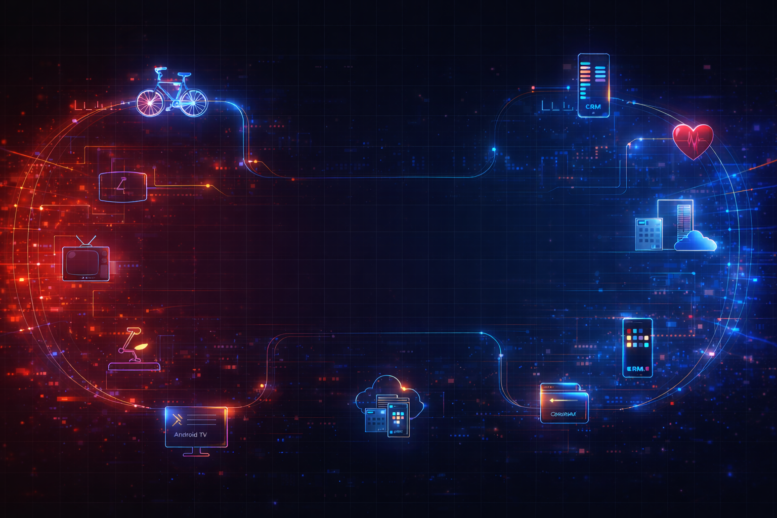 Полная интеграция с профессиональным оборудованием Technogym — сайкл-тренажеры Group Cycle Connect и гребные тренажеры Skill Row для групповых форматов.